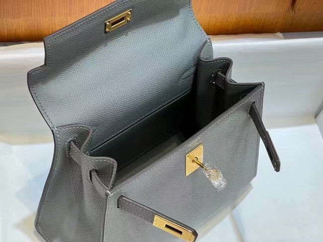 Hermes Kelly 20cm Shoulder Bags Epsom KL2750 Iron gray&gold